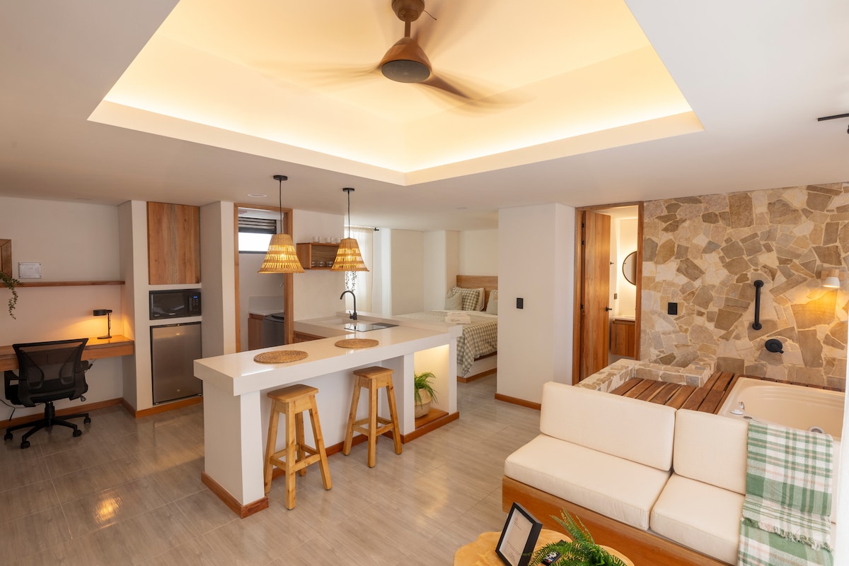 ¡Refugio Cielo Verde! Descubre un espacio encantador en Sabaneta, donde la tranquilidad y la comodidad se unen para brindarte una experiencia única. Cada rincón ha sido diseñado con amor y cuidado para brindarte una maravillosa experiencia. Disfruta de un jacuzzi privado en tu terraza con vistas a la montaña. Relájate con total privacidad, cocina equipada, WiFi rápido y todo lo necesario para una estancia inolvidable. Ideal para desconectar, reconectar y regalarte momentos especiales.