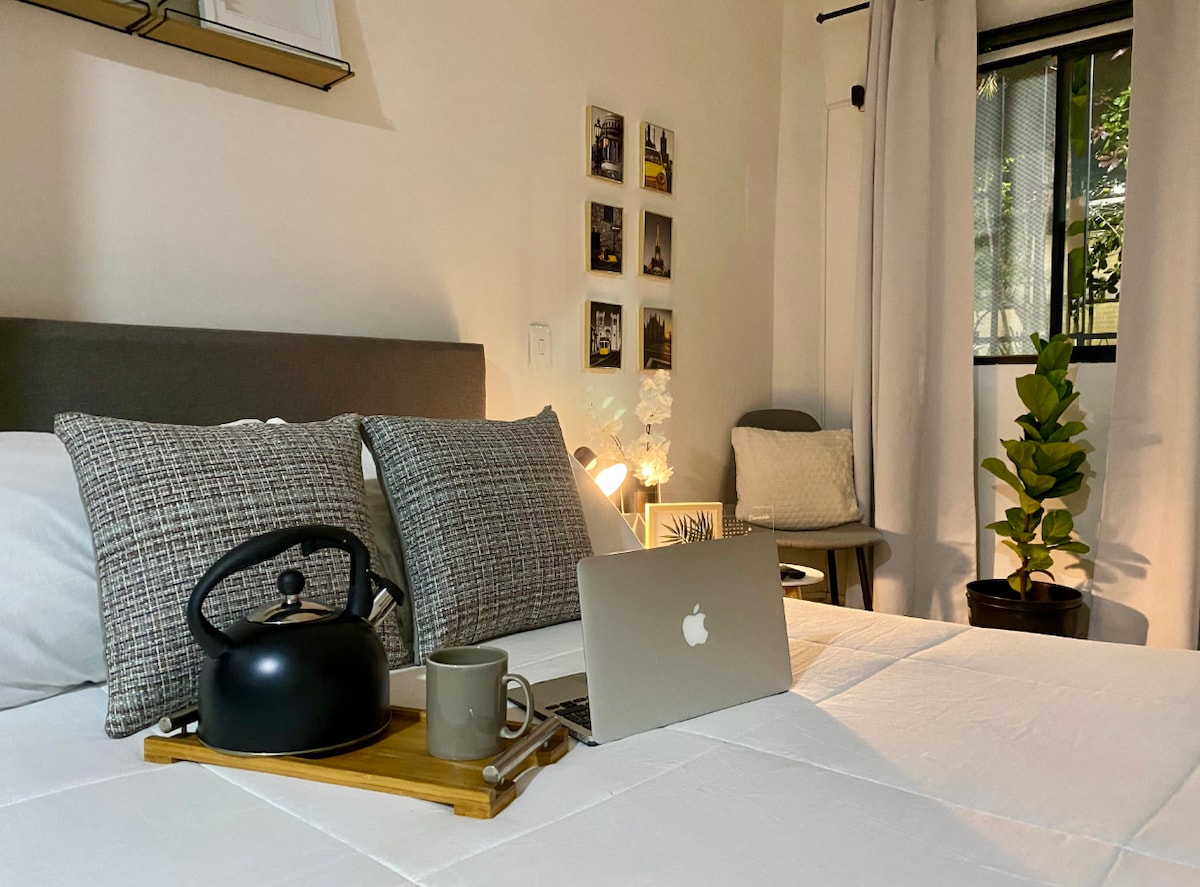 Apartaestudio totalmente independiente, dotado con todo lo necesario para una placentera estadía, bien sea laboral o turística, apto para una pareja o para una sola persona. Ubicado en el interior de una casa finca y de fácil acceso, con zonas verdes para tener conexión con la naturaleza. con excelente vista de la ciudad y espacios naturales, cuenta con TV Smart (sin servicio de tv pago), WIFI, lavadora, nevera, agua caliente.