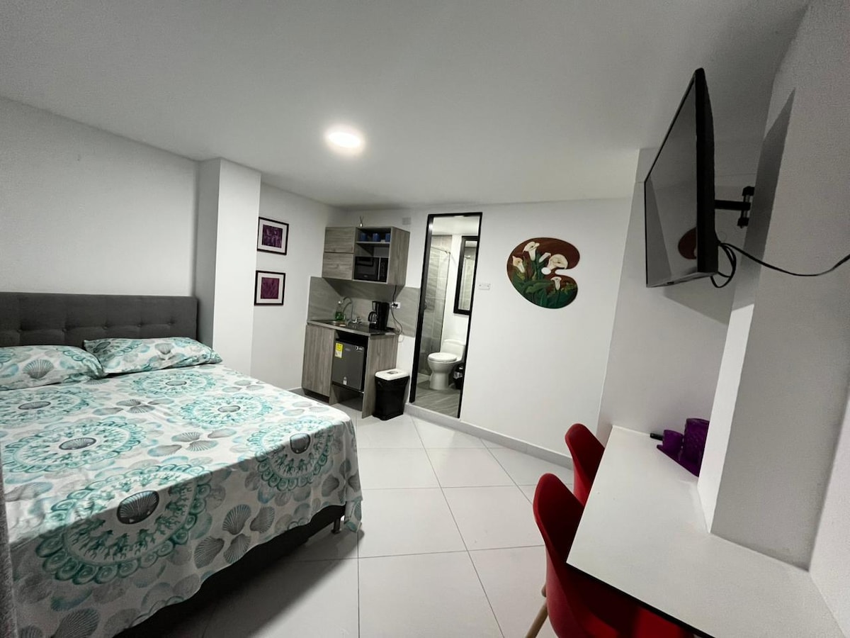 Strategic location to enjoy Medellín Private apartment in a central area, close to Laureles' nightlife district, the Belén Sports Complex, and with easy access to public transportation. It features a fully equipped kitchen, private bathroom, desk, TV, and fast wifi. This space is designed for guests who value tranquility, order, and rest. Perfect for travelers looking to disconnect, work remotely, or enjoy the city at a calm pace.