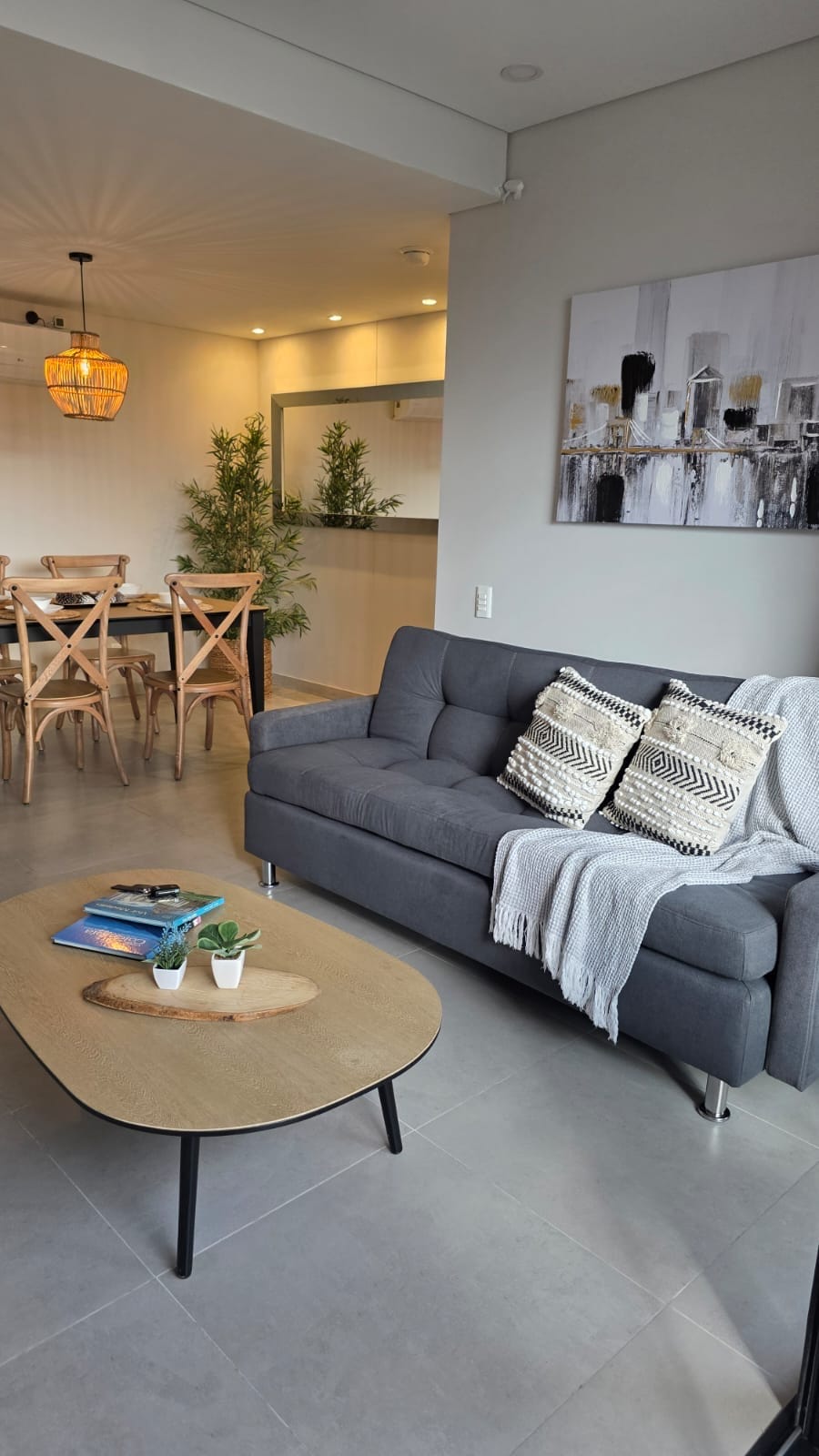 Bienvenido a tu refugio de lujo en Sabaneta Antioquia. Un apartamento moderno, elegante y cuidadosamente diseñado para quienes buscan comodidad, estilo y una experiencia extraordinaria. Disfruta de una vista panorámica a la ciudad y las montañas, iluminación cálida ambiental, acabados en mármol, madera natural y espacios minimalistas que transmiten tranquilidad y sofisticación. Perfecto para viajes de descanso, trabajo remoto o escapadas en familia.