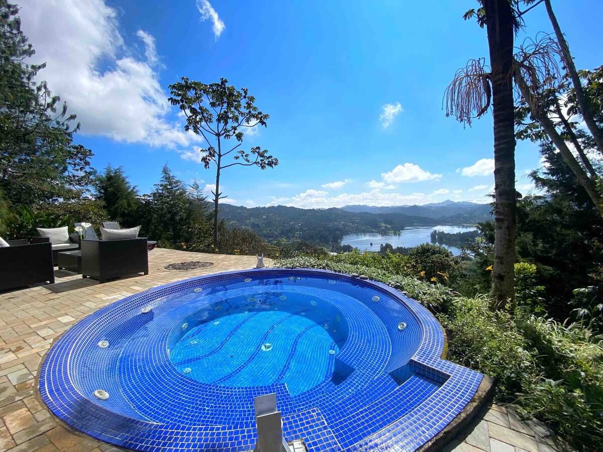 Luxury Dream Country House: Jacuzzi, Home Theater & Nature 🔥 Just 35min from Medellín or 35min from the Airport ✈️ Surrounded by nature, this house offers a unique experience with lake views and a starry sky. Unwind in the spacious jacuzzi, enjoy movie nights in the lounge with a giant screen and surround sound, or relax in one of the four bedrooms, each one with a TV. Perfect for families or groups of friends, with comfortable, modern, and fully equipped spaces. Your perfect getaway awaits!