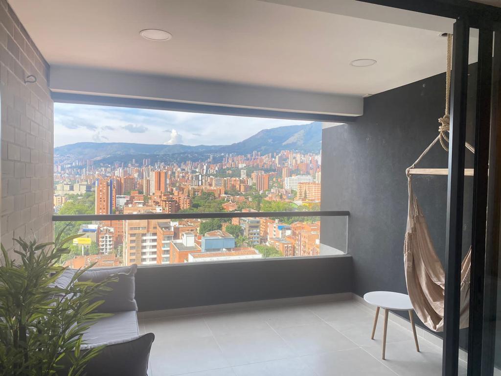 Apartamento ubicado en el piso quince, en uno de los mejores sectores de la ciudad de Medellín, con una vista es excepcional. Cuenta con 2 alcobas con aire acondicionado, 2 baños completos y un balcón donde podrás disfrutar de la vista. Todas las cortinas son automáticas con un toque moderno, 3 televisores, lavadora y cocina bien equipada y lavavajillas, cuenta con 3 parqueaderos cubiertos gratis. En la terraza encontraras una piscina donde podrás relajarte y disfrutar el paisaje. Gimnasio.
