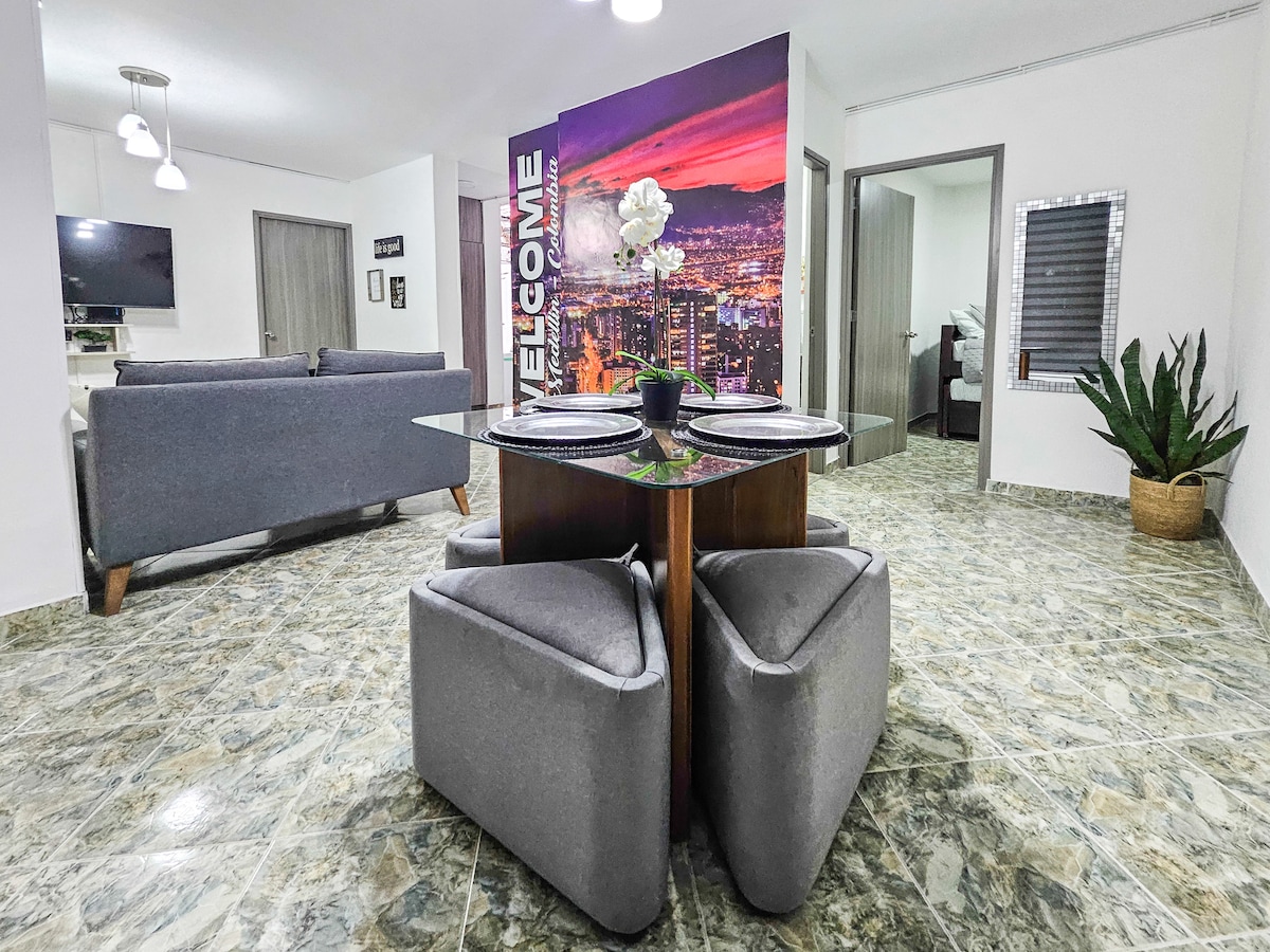 Let yourself be amazed by our cozy and visually striking space! Located in a peaceful, walkable neighborhood, Amanda is the perfect home base for your stay in Medellín. With high-speed internet, it’s ideal for remote work. Just one block from a main avenue, you’ll have easy access to public transportation, plus supermarkets and restaurants nearby. A warm and stylish stay awaits you!