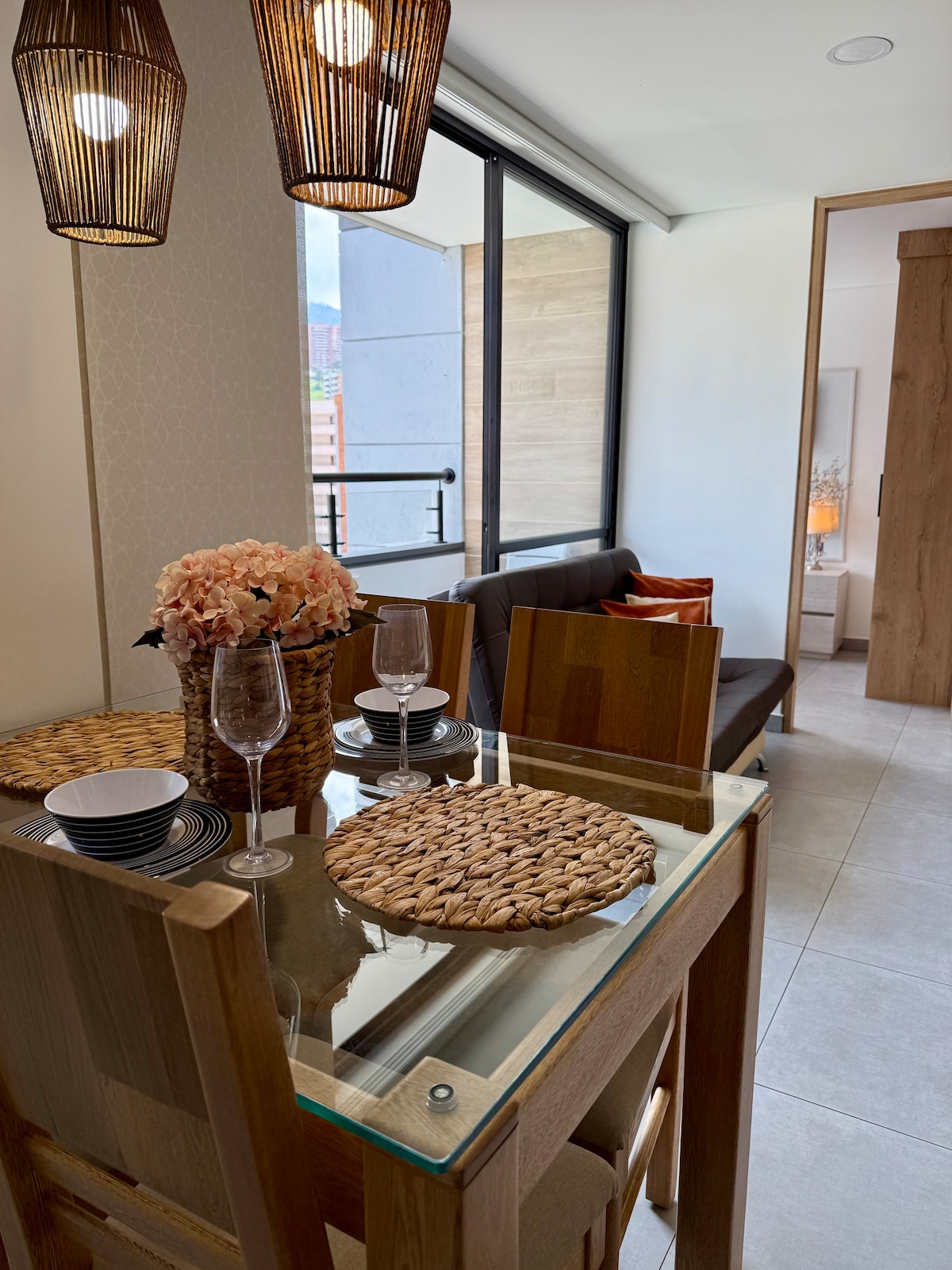 **IMPORTANT! READ HOUSE RULES FIRST** Stunning 20th-floor modern apartment with panoramic city skyline views. This 2-bed retreat sleeps 4 and features a private balcony, dedicated workspace, and fast Wi-Fi. Enjoy resort-style amenities including a rooftop jacuzzi, gym, and sauna. Perfectly located opposite the Viva Envigado shopping center for ultimate convenience. Ideal for families, couples, or business travelers seeking luxury and comfort.