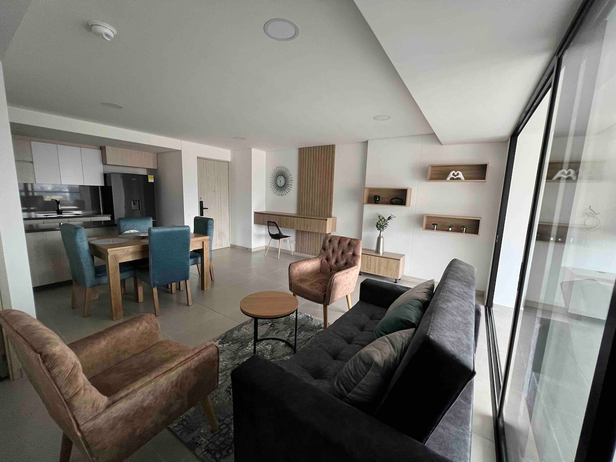 Espacios amplios, balcon, sala comedor, cocina, dos habitaciones, cada una con cama doble, buena ventilación e iluminación, un baño amplio, todo con un toque acogedor, que te hará sentir como en casa. La ubicación es estratégica, estarás a 8 minutos caminando de la estación metro Envigado y del centro comercial Viva, a 10 minutos en trasporte público del poblado y a 15 minutos en metro del centro de Medellín.