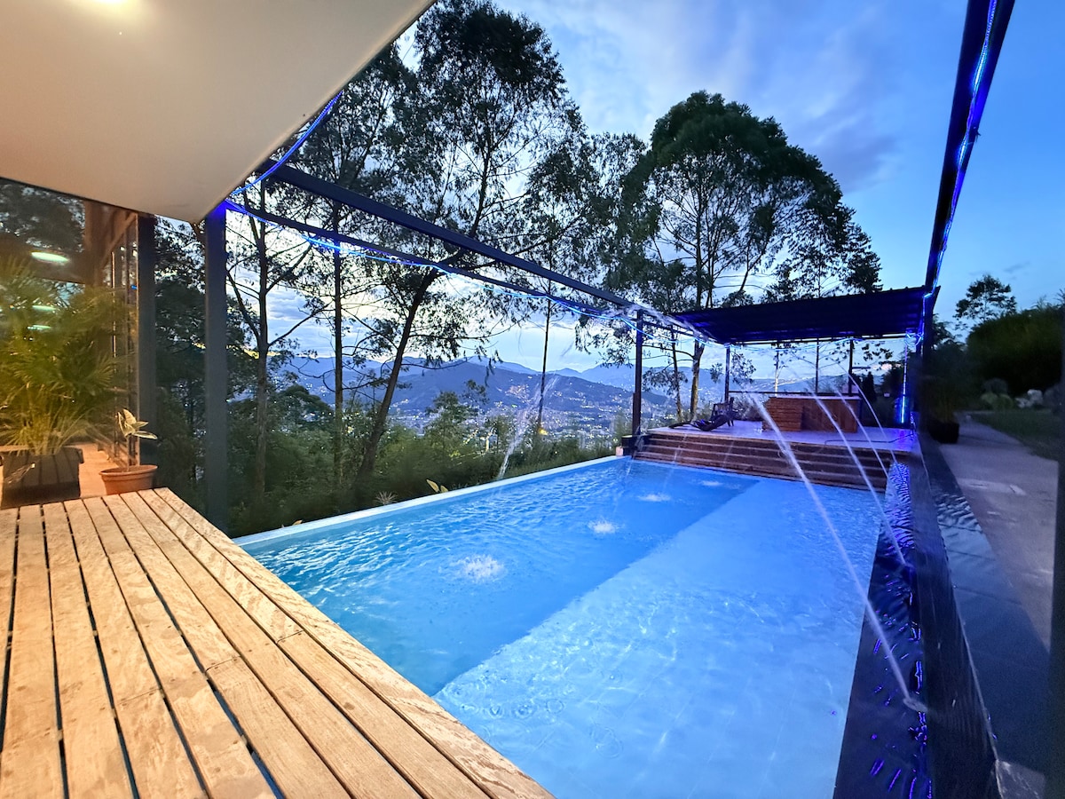 Vive una experiencia exclusiva en Palmas en una casa de lujo rodeada de naturaleza, con vista panorámica de Medellín. Disfruta su piscina climatizada con horizonte infinito, cinema abierto con sonido envolvente, cocina totalmente equipada, terraza y múltiples espacios de descanso junto a un bosque privado. Con 3 habitaciones en suite y diseño elegante, es el lugar ideal para quienes buscan confort, privacidad y un ambiente único para compartir con familia o amigos.