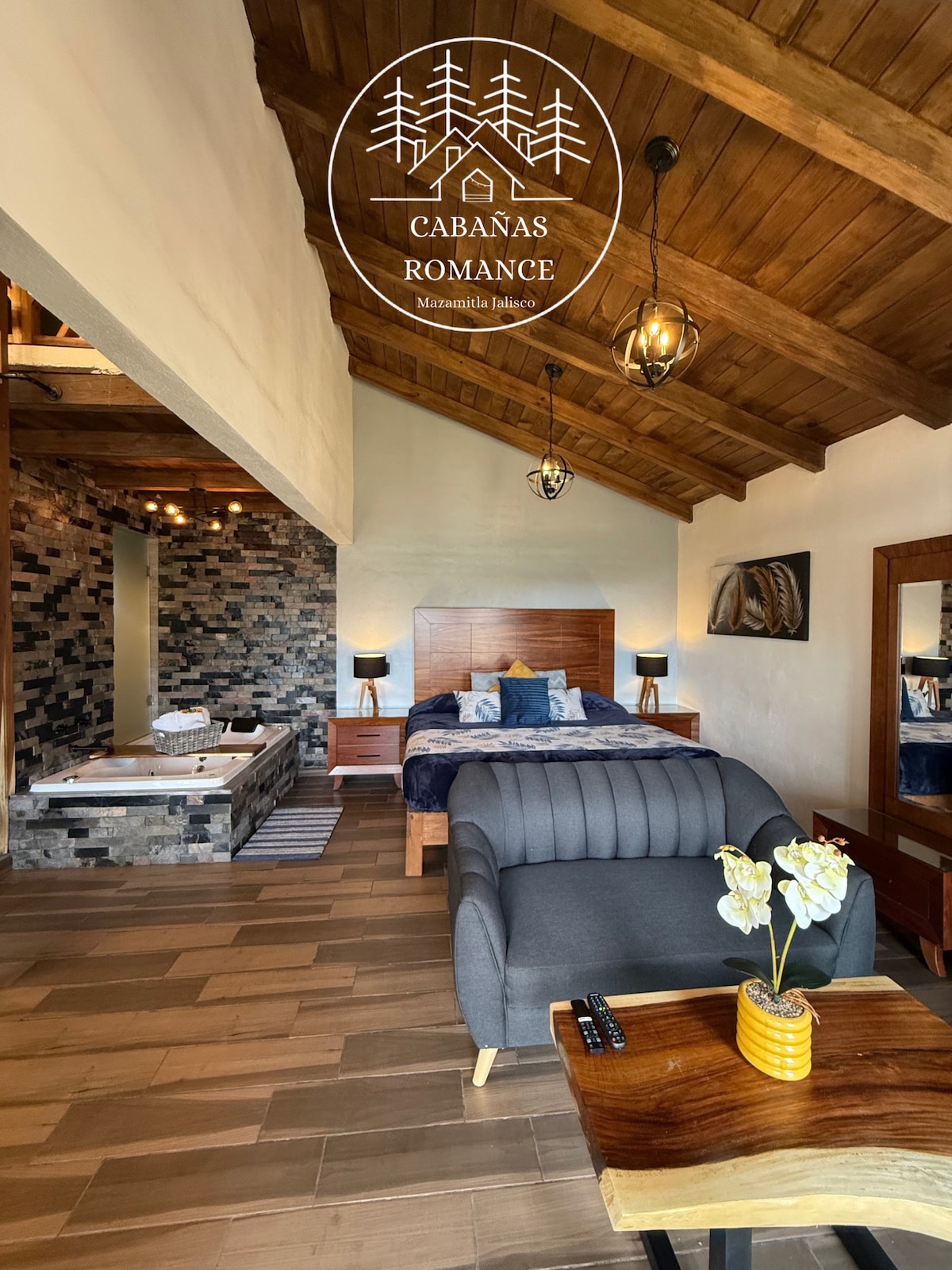 Relájate en este espacio tan tranquilo y elegante, Disfruta del encantador entorno de esta romántica Cabaña Prieta. Se encuentra ubicado a 5 km de la plaza principal, esta rodeada de enormes pinos, cuenta con acabados de lujo, Cocina equipada, Jacuzzi, Terraza con vista Panoramica, TV con sistema Dish. Todo lo necesario para que pases un agradable noche con tu pareja en la naturaleza.