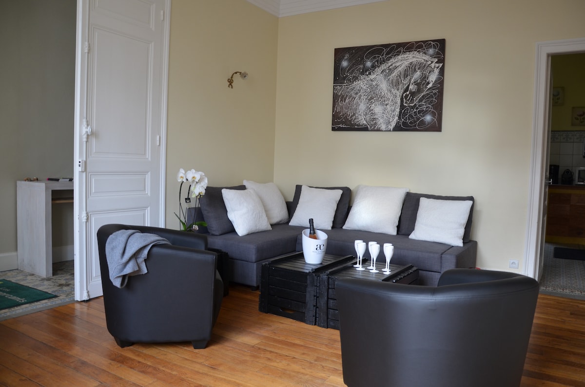 Le gîte "les lumières d'Epernay" est une ancienne dépendance entièrement rénovée. Nous avons opté pour une décoration sobre (tendance industrielle). Avec ses grandes baies vitrées, toutes les pièces baignent dans les rayons du soleil. Il se situe à 5 minutes à pied du centre ville d'Epernay et à 10 minutes de la gare. Pas besoin de prendre la voiture pour une dégustation d'un grand nom de Champagne. 2 places de parking privées et sécurisées sont d'ailleurs à votre disposition.