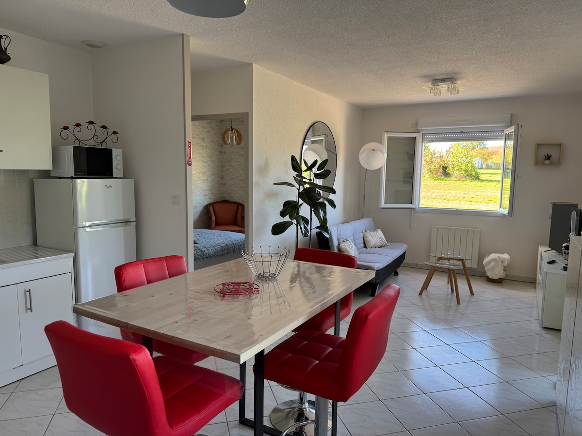 Véritable cocon de détente, à seulement 6 min de l’autoroute. Logement climatisé , idéal pour un couple, un déplacement pro ou une petite famille (jusqu’à 2 enfants). Maison de 27 m² avec lit double, canapé-lit 2 places, et lit bébé sur demande. Cuisine entièrement équipée, Wi-Fi, TV, espace calme pour télétravailler. Terrasse privée, stationnement facile. Environnement paisible, esprit village, à proximité de commerces : boulangerie, tabac, supermarché, restaurants. Confort et sérénité assurés.