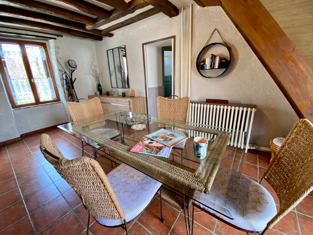 Maison de ville située au cœur de Meung-sur-Loire À 2 minutes à pieds du Château À 5 minutes de la Loire Entre Orléans et Blois À 30 minutes de Chambord Maison de 102m2 sur 3 niveaux pouvant accueillir jusqu’à 6 personnes Rdc : cuisine dînatoire, salon, wc 1er étage : 1 grande chambre, 1 chambre passante, 1 salle d’eau L’accès au 2nd étage se fait par un escalier raide 2nd étage : 1 chambre, 1 salle d’eau Possibilité d’arrivée autonome Parkings publics gratuits à proximité Non adaptée aux PMR