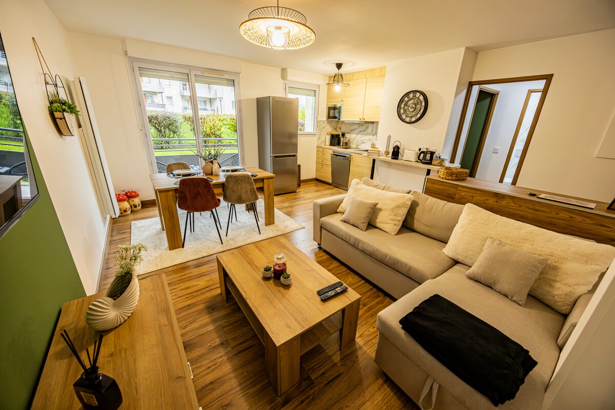 Appartement pouvant accueillir 2 adultes 2 enfants (canapé lit) Les points forts : * Proximité de la gare sncf et routière (200m), navettes pour accéder aux stations: Albiez, Corbier, La Toussuire, St Jean d'Arves, St Sorlin d'Arves. * Accès Italie 40 min * Entrée autonome avec code d'accès envoyer le jour de l'entrée * Parking gratuit fermé Vous aurez à disposition : Kit de bienvenue/ café- thé-sucre/ Linge de lit/ Serviettes /Kit de nettoyage * Netflix * esprit loft