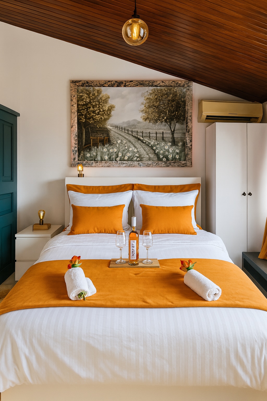 The Loft - A stunning, brand new mountain view apartment, perfectly blending authentic rustic charm with modern comfort. Sited on the top floor of a detached house, this Loft apartment, features an open plan lounge/dining space, exposed wooden beams and a beautiful stone fireplace, creating a cosy, countryside ambiance for a memorable stay. Just a 7 minute stroll to Pramanta Village's main high street with cafes, tavernas, shops, and a bakery - ideal for a car-free getaway.