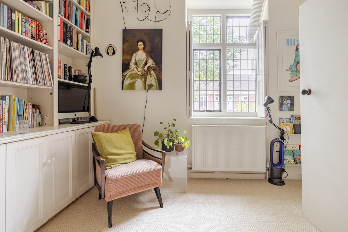 Our spacious, light and quiet apartment combines the best charm of London: the juxtaposition of old and new. Located in the gated Heritage Quarter at the heart of the Royal Arsenal, with a Thames River view, it offers contemporary comfort with period features, WiFi and easy transport to all of London & beyond by High Speed Elizabeth Line (direct journey to Oxford Street-Heathrow), UberBoat/Thames Clippers, Train & DLR. Perfect for London City Airport, Excel, O2, Woolwich Works & Punchdrunk.