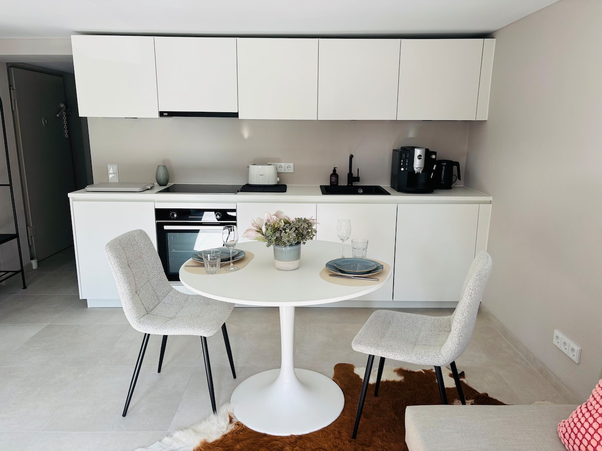 Wir vermieten eine moderne und helle 2,5-Zimmer Wohnung mit großer Terrasse. Die Wohnung ist 55 qm groß und verfügt über einen separaten Eingang. Die zum Wohnzimmer offene Küche ist neuwertig und voll ausgestattet. Es gibt ein Schlafzimmer mit großem Doppelbett und ein Arbeits- bzw. Schlafzimmer mit Queensize-Bett. Alle Zimmer mit Echtholz-Parkett und dreifach verglasten Fenstern. Modernes Duschbad. Kontrollierte Wohnraumbelüftung. Freies WLAN. 60 Zoll Flatscreen-TV mit Kabelanschluss im WZ.