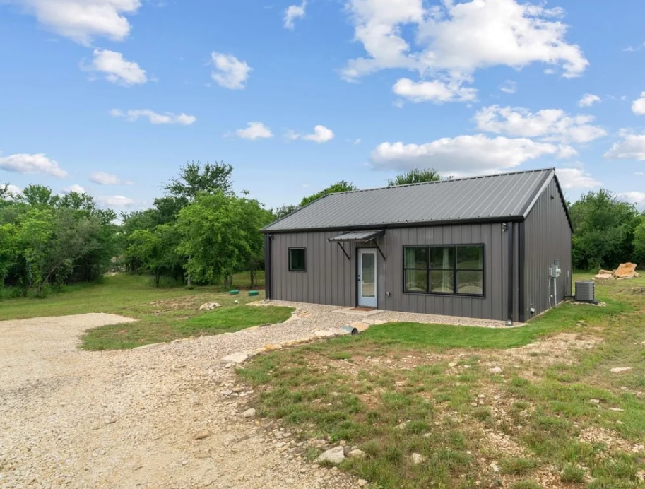 Relax with all the space you need on this 8-acre property just off of 281 and only 10 minutes from downtown Stephenville! This rustic, 875SF barndominium makes for a great weekend stay to visit the area, or a quick stop on a road-trip. A cozy cabin feel with a full kitchen, bath, living space, and two bedrooms, it is ready to accommodate any needs!