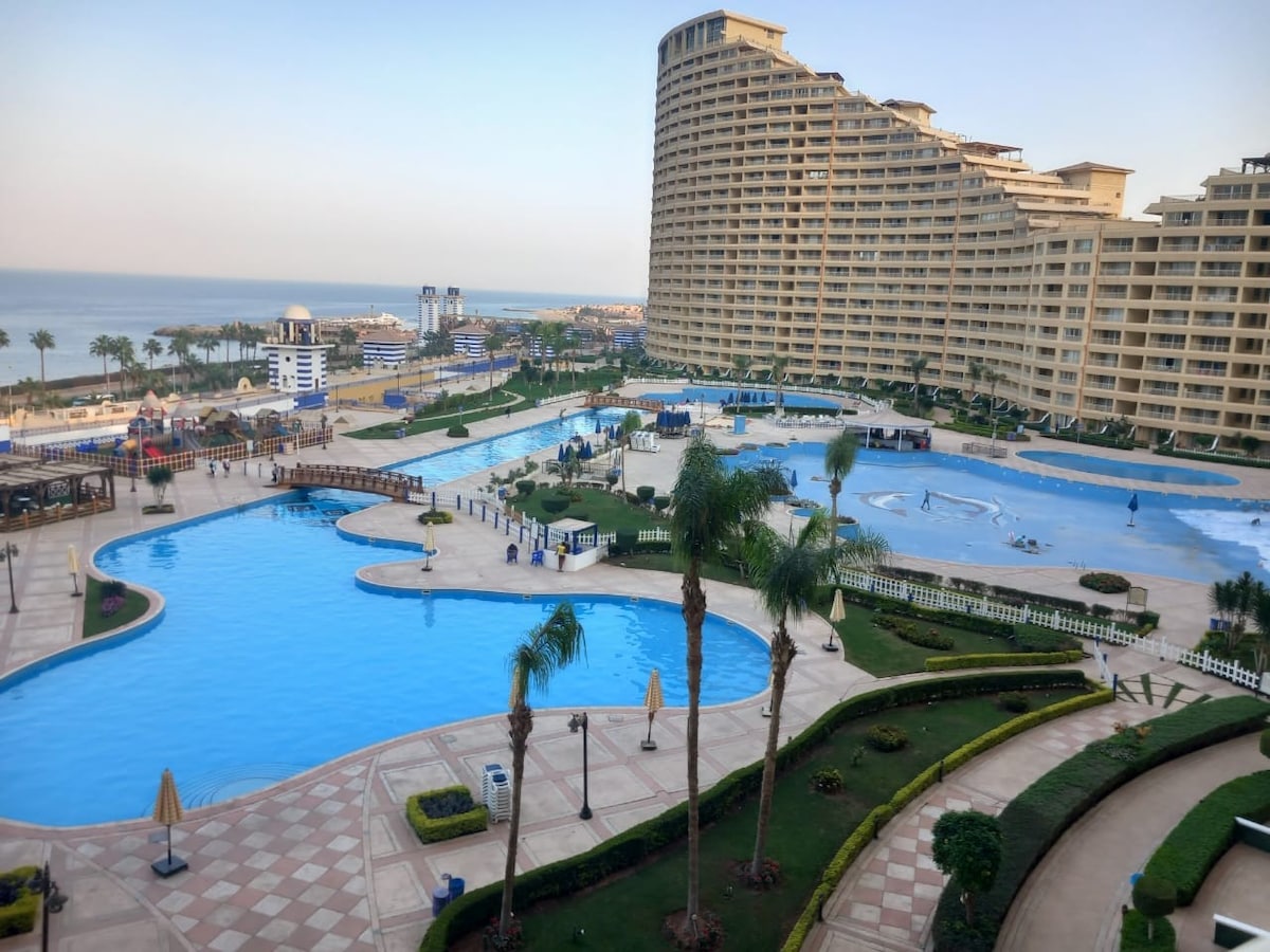 انعم بالهدوء والاسترخاء بصحبة عائلتك في هذا المسكن الهادئ. شاليه مميز جدا غرفتين بحمامين دور اول بالروف رؤية للبحر بشكل مباشر مكيفه بالكامل في قرية مميزه جدا قرية بلومار الدوم عند بورتو السخنه شاطئ رملي ومميز جدا ويوجد سراير عالبحر القريه مجهزه بالكامل