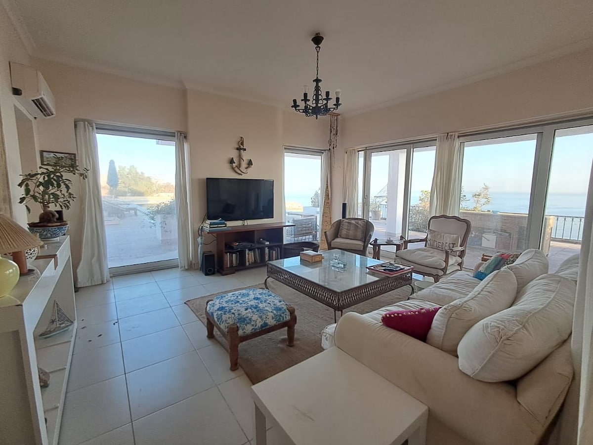 Perfect place to relax and enjoy the view. Very inspiring 1 bedroom with extention and a beautiful view. Open kitchen and cozy interior that overlooks the sea and the shared pool. You're welcome.