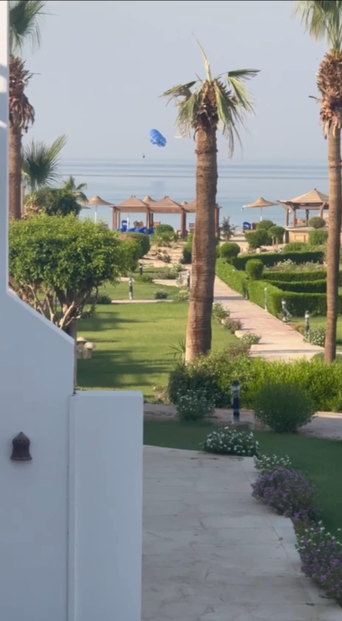 A Cosy Chalet, located at Little Venice (Jaz) resort on the Red Sea is the perfect relaxing venue for families. It features 3 bed rooms with 4 queen beds, 2 bathrooms, living and dining area, an open fully equipped kitchen, a spacious porch, and a 120 sqm garden overlooking a magnificent fountained lake. It easily accommodates 6 adults and 2 kids. The chalet is a 5 min walk to a vast sandy beach with a pier and water rental activities. A separate maid / driver room is available upon request.
