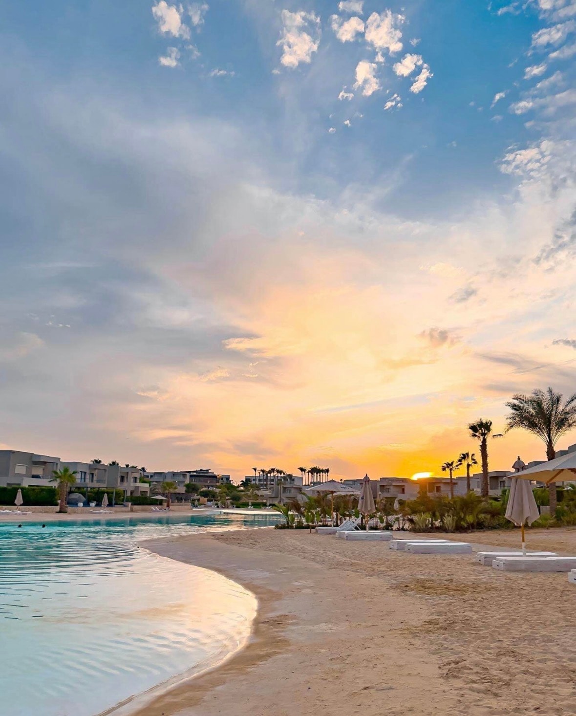 Kick back and relax in this calm, beautifully maintained, two bedroom two bath corner unit in the heart of Ain Sokhna. Completely renovated Wabi-Sabi style home welcomes you with its unique rooms, stunning kitchen, and amazing entertaining spaces immersed with natural light. The view is precious overlooking beautifull swimable crystal lagoons, along with a self-healing green area. Conveniently located close to Cairo Governorate, and about 10 mins from Ain Sokhna gates. “A One-Hour Ride”.