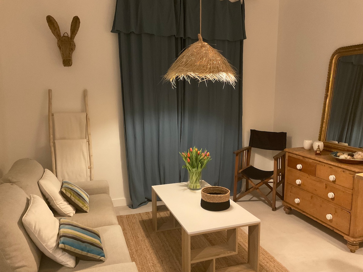 Maison spacieuse et cosy à 45 min de la mer. Dotée d’1 grand espace de vie (45m3) avc 1 salon, l’espace salle à manger très lumineux, 1 cuisine entièrement équipée, 1 salle de bain avc douche italienne, toilettes et lavabo. Ainsi qu’1 jardin à l’extérieur, 1 barbecue est à votre disposition ainsi qu’1 table à manger. A l’étage vous trouverez 2 chambres, 1 avc lit double et l’autre lit double et matelas au sol, 1 salle de bain avc baignoire, 2 lavabos et toilette. 4 places de parking disponibles.