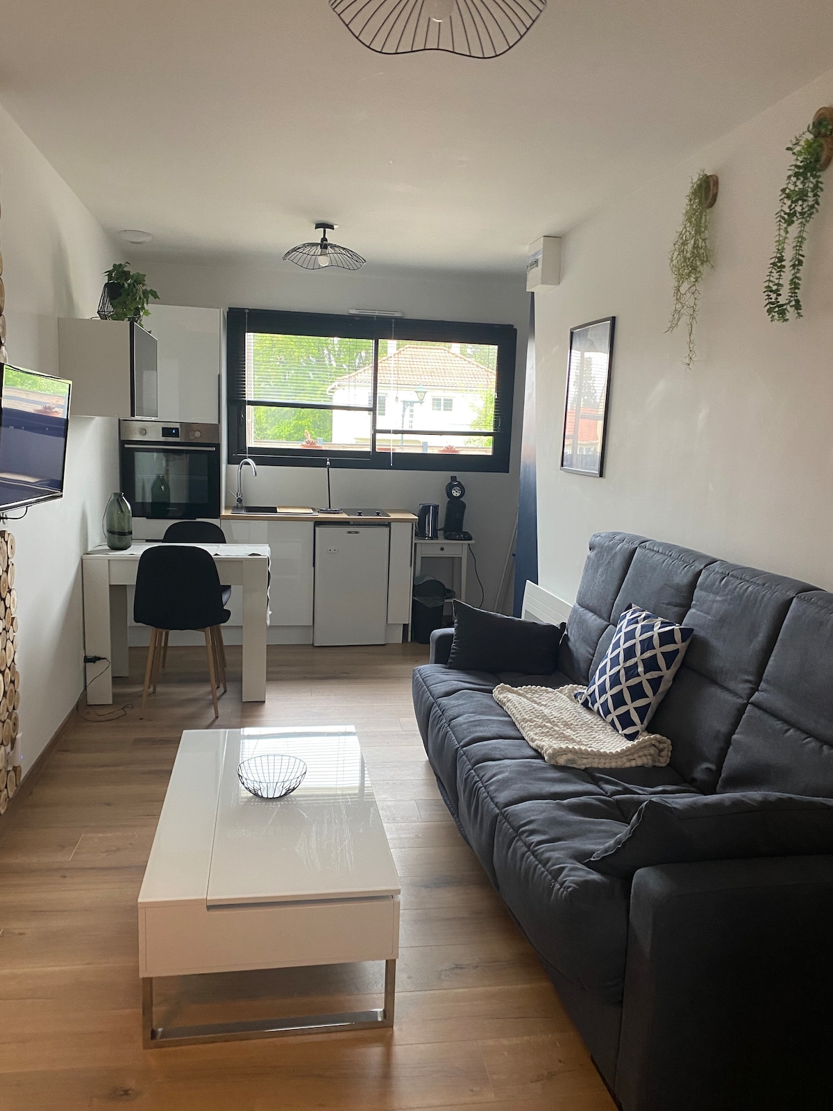 Vous êtes les bienvenus dans ce charmant studio doté d'une pièce à vivre confortable équipée d'un lit double et de nombreux rangements pratiques. La cuisine est équipée de tout le nécessaire pour cuisiner vos repas. La salle d'eau dispose d'une grande douche accessible pour les personnes à mobilité réduite. Vous bénéficiez aussi d'un coin bureau pour télétravailler dans le logement. Nous espérons que vous vous sentirez chez vous et que vous apprécierez votre séjour dans notre logement.