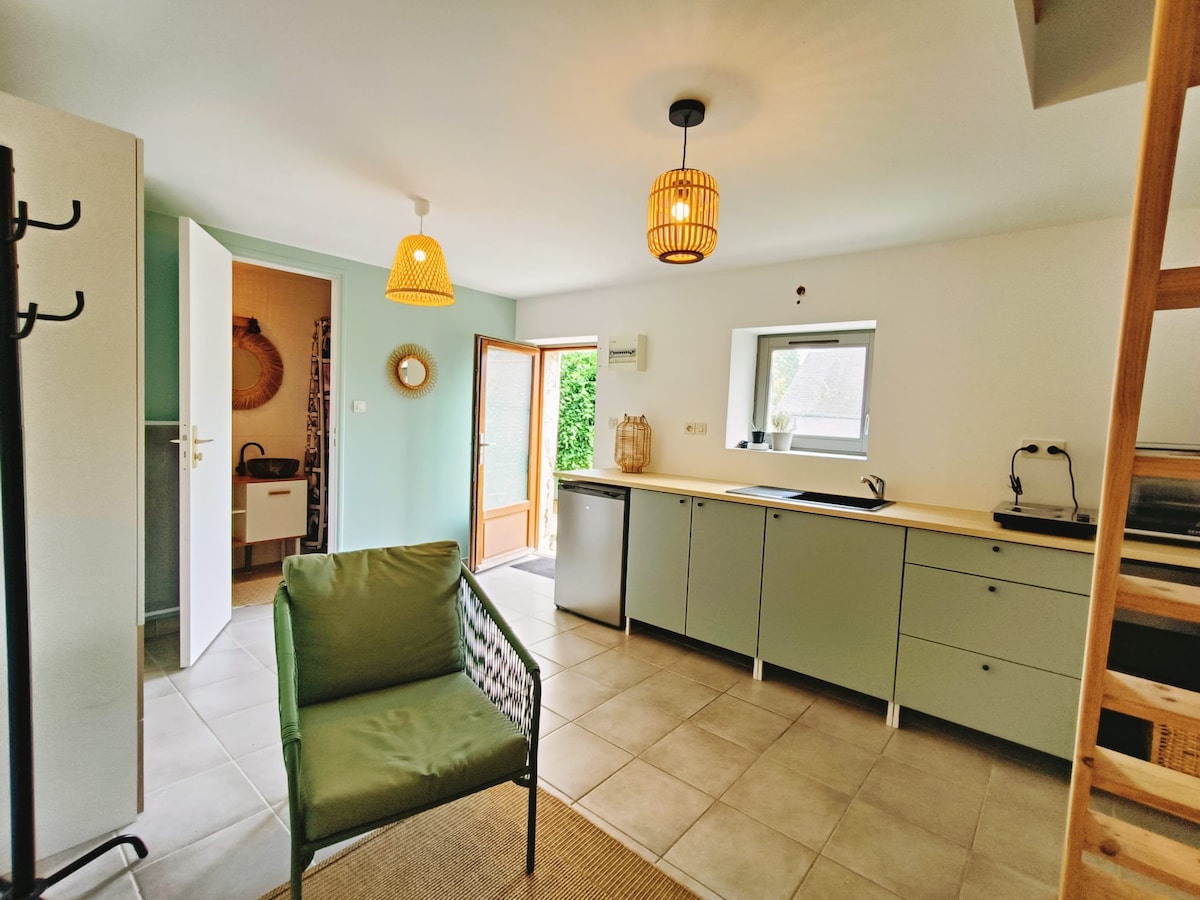 Bienvenue dans notre charmant appartement situé au cœur d'un château du début du XIXe siècle, au milieu d'un parc verdoyant. À seulement 15 minutes du centre de Nantes, cette retraite en campagne offre une escapade paisible et élégante. L'appartement comprend une confortable chambre avec un lit queen size, une cuisine séparée équipée, et une salle de bain pour votre commodité. Profitez du charme historique du château, alliant l'histoire du XIXe siècle au confort moderne.