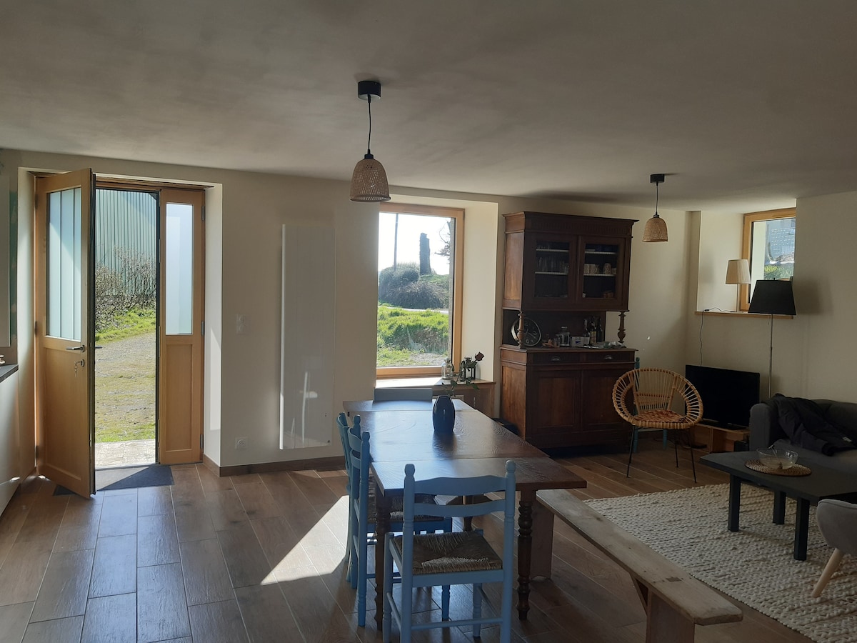 Située sur une ancienne ferme, ce logement est une partie de longère bretonne. La rénovation est presque terminée, les terrasses sont en cours de construction. Située au milieu des champs, vous serez au calme. Au RdC : grande pièce de vie avec 1 salle de bain (baignoire) et la cuisine toute équipée. Au 1er étage, 3 chambres avec une salle de douche. Le jardin derrière la maison est fermée par un grillage. Le devant n'est pas clôturée.