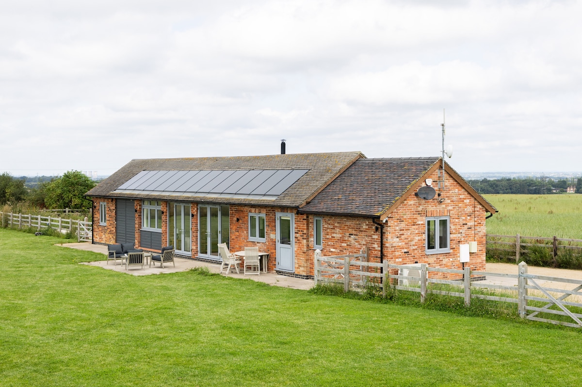 Newtons Corner is a beautiful and secluded 2-bed Barn Conversion with stunning panoramic country views. Relax in the wood-fired hot tub (with bubble spa) and enjoy the view! A 10 mins walk to the main entrance of Donington Park Race Circuit, this is the ideal luxury stay if attending a racing event. You are welcome to walk in the surrounding woodlands and fields, which belong to your hosts, the Donington Estate. Located minutes from the historic market town of Melbourne, Derbyshire.