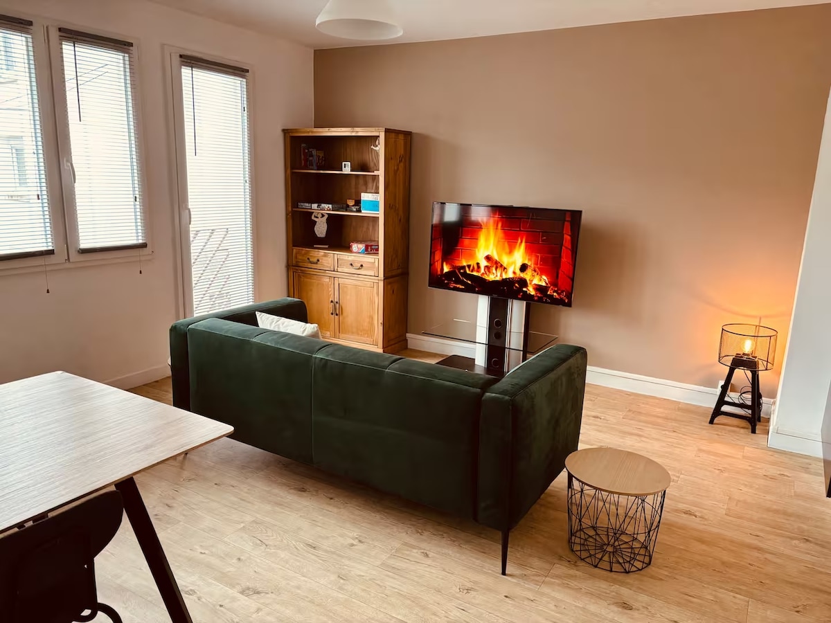 Ce studio situé au 2e étage (sans ascenseur) d’un bâtiment bourgeois conviendra parfaitement aux voyageurs ayant besoin d’un logement à proximité immédiate du Tribunal (90m) ou proche du centre-ville Literie confortable avec un couchage gigogne 160x200, FIBRE, télévision, espace cuisine, ventilateur, LINGE FOURNI ainsi que du GEL DOUCHE… l’équipement est pensé pour vous fournir tout ce que vous aurez besoin; le tout dans une déco chaleureuse qui vous fera vous sentir chez vous