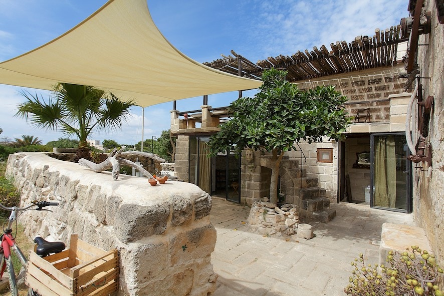 Alloggio di charme nel verde, è parte di una casa contadina ristrutturata . Silenzioso, ha un ampia terrazza con splendida vista su campagna, mare e montagna. Il giardino (4000mq) è ricco di fichi d’india, ulivi, limoni e ospita un angolo relax. La strada di accesso si affaccia sulla “Cala Bianca” detta così per il colore della scogliera. Il mare dista 300 m ed è raggiungibile da due sentieri pedonali (dislivello 60 m). Sulla costa un arco naturale, una grotta con una Madonna e un’isoletta.