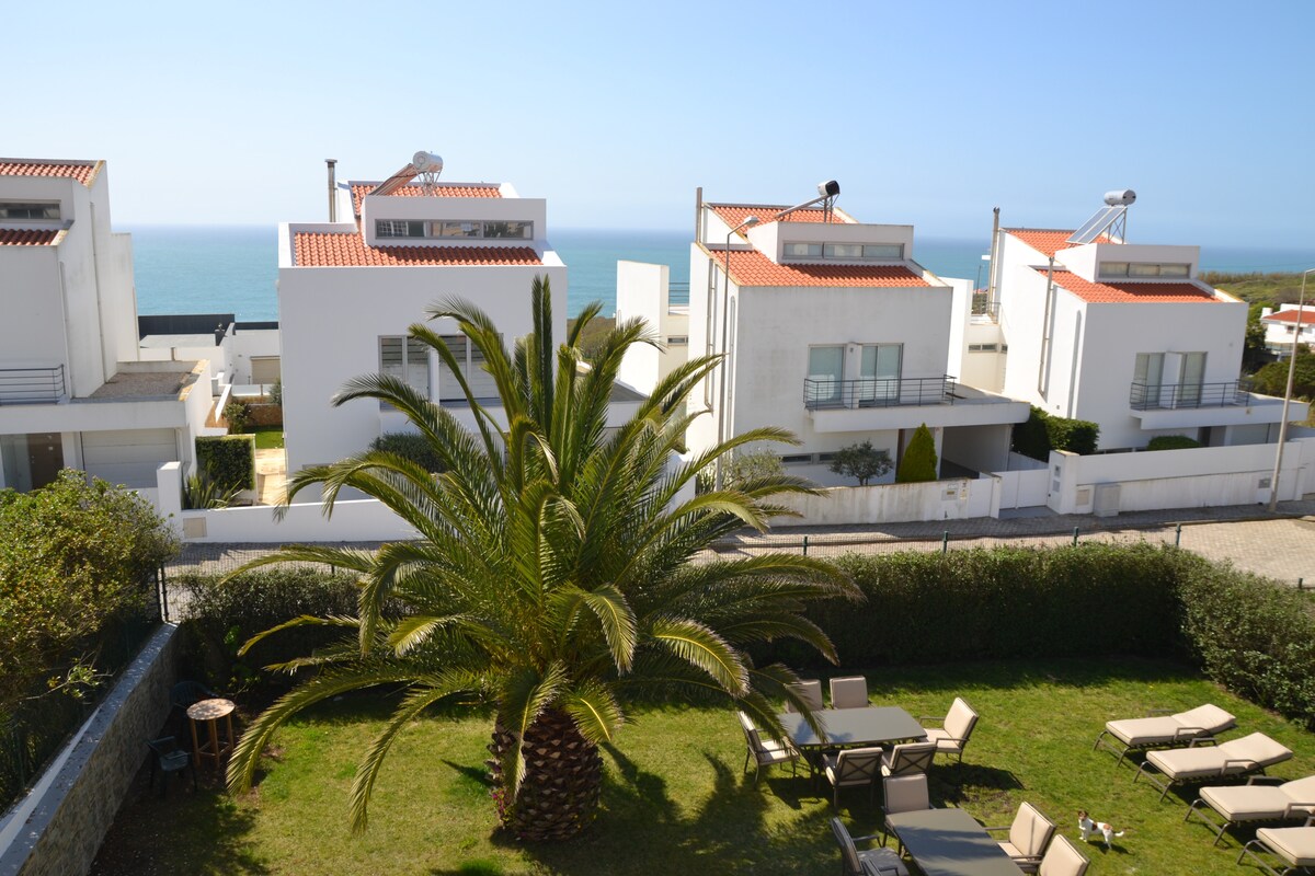 Exclusive villa with breathtaking ocean view, complete with: 1) private pool, 2) living room opening up to a terrace overlooking the sea, with dining table, lounge area and hammock, 3) 4 bedrooms, 4) 3 bathrooms and 5) spacious kitchen. Located in gated estate with tennis court, football field, and several gardens. Walking distance to several beaches, surf spots, town center and other services. Includes welcome basket with local products, and a Ericeira guide with special tips.
