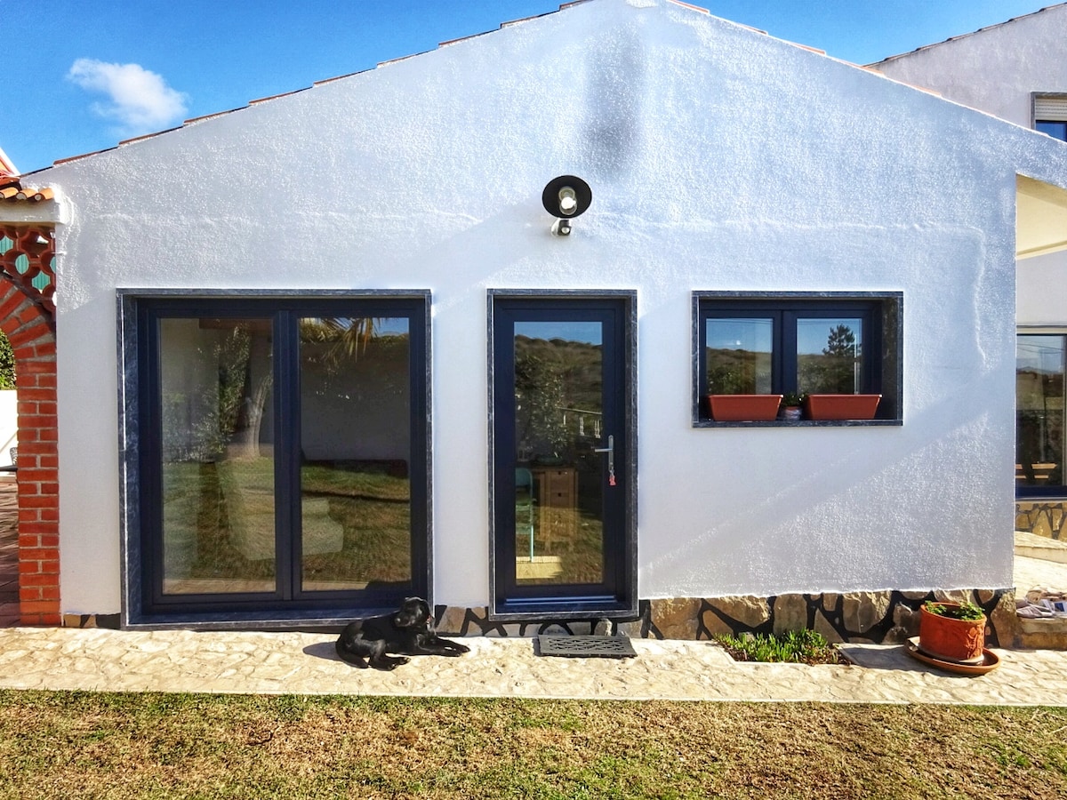 Casa com 1 quarto localizada no interior de uma pequena quinta. A 8 kms da praia, 11 km da Ericeira, a 30 minutos de Sintra e Lisboa. A Casa é ideal para 2 adultos e 1 criança. A piscina é partilhada mas apenas com mais duas casas ( uma delas com piscina privada ) e com os proprietários ... que de vez em quando também tem direito a um mergulho :)) ou seja nunca tem muita gente !! * In winter or colder months the water temperature in both pools don't go more high than 22-24 degrees