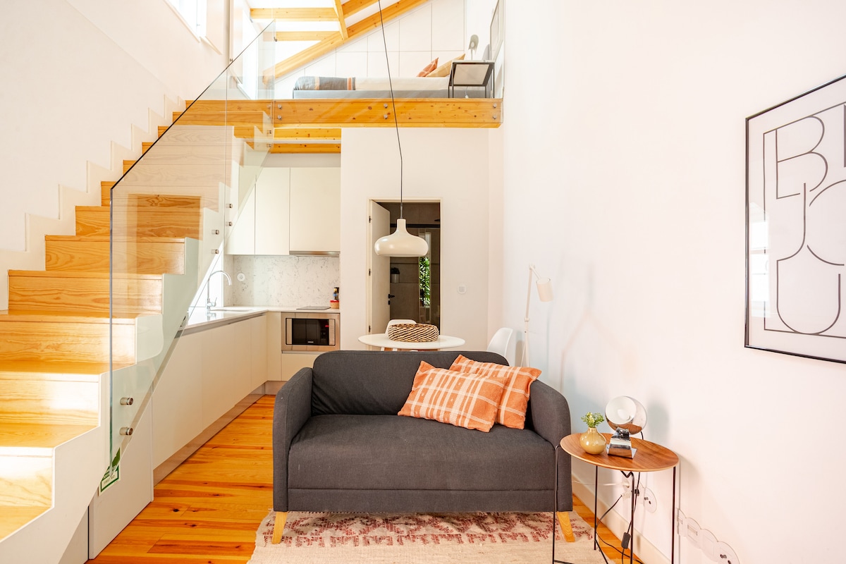 Enjoy a unique experience in this luxurious penthouse located in the Chiado district. With a breathtaking view of the city and the river, it has a loft and terrace with a 180 degree unique view. The open kitchen is designed with high quality appliances and dining space which leads to the living room. For evening, 2 king size beds and 3 bathrooms with fitted wardrobes provide relaxation, comfort and welcome organization. The top floor loft has a bar area, tv and a comfortable sofa for quiet time.