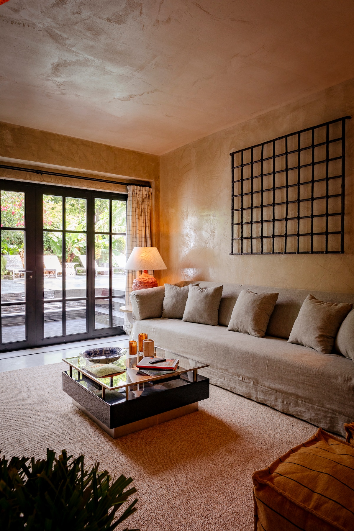 The Pool Pavilion is a cosy and relaxed two suites and kitchen space that overlooks a lush garden and is the ideal choice for a joyful and relaxing getaway. Appointed to a high standard with simple yet sophisticated materials, such as micro cement flooring , stucco walls and linen curtains, and decorated in soothing natural colours, it blends harmoniously with its surroundings. Large patio doors lead out onto a spacious, private garden with wood decking, a heated pool, sun loungers and table.
