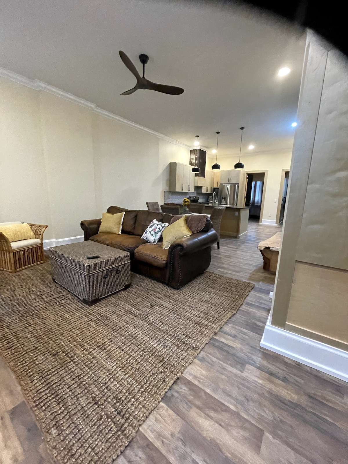 If this listing is not available please check out my other listings This 1st floor loft features an open concept kitchen & living room with stove, refrigerator & microwave. A queen sleeper sofa & 46" smart TV are in the living room. The bedroom has a king bed, dresser & recliner. Washer & dryer can be found in the bathroom along with a soaker jacuzzi tub. A/C mini splits help cool down the space. This is a mix use property with periment tenants as well as other guest. Noise is typically low