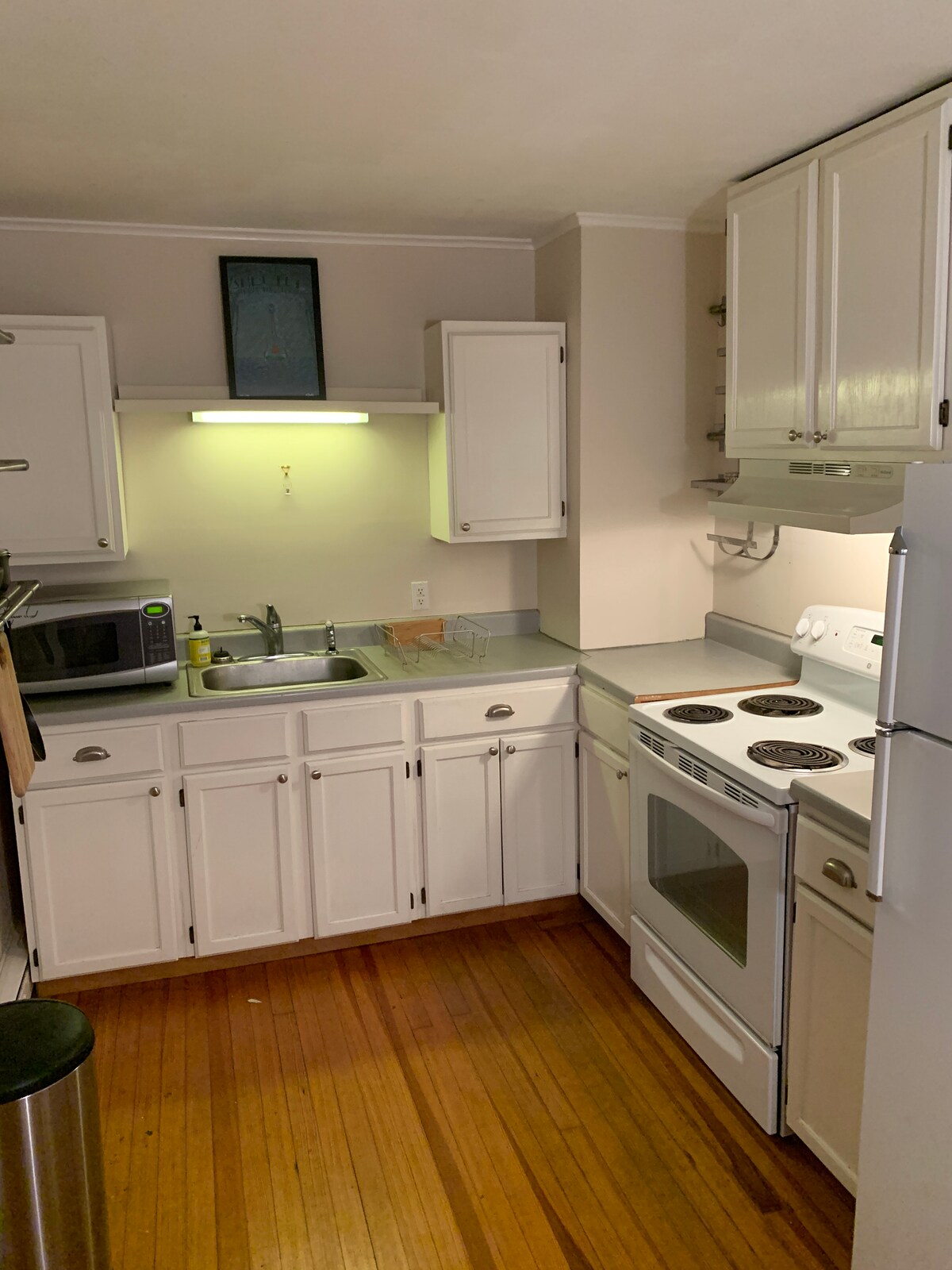1800's barn that was original barn to Governor Yates Mansion - which now houses a 2nd floor quiet, quaint 400 sq. ft "open concept" studio. Private outdoor deck, offstreet parking. Loads of character including shiplap siding on walls and ceiling, and old wooden floors. Fully equipped kitchen with full size fridge, gas stove, microwave, toaster, coffee maker, dishes, silverware, pot & pans. Full bath with smaller stand up shower. Queen size bed.