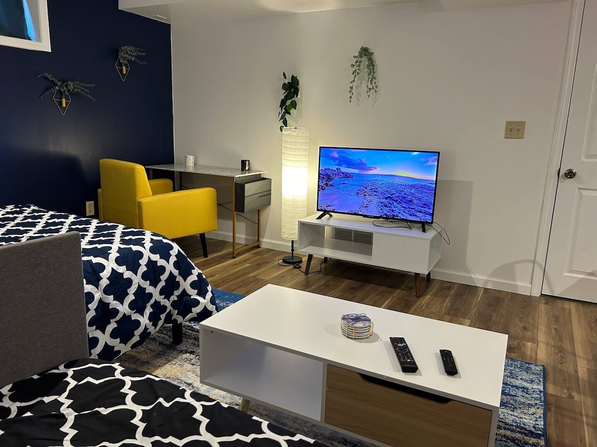 10 mins -Downtown Syracuse, 7 mins-Destiny USA, 10 mins- Syracuse University, 10 mins- JMA Wireless Dome ,13 mins- Empower FCU Amphitheater. Fully stocked kitchen including a small blender, air fryer, toaster and fully automatic espresso/ coffee maker, just press a button! Outside sitting area totally private with a gas firepit and year round hot tub. Pack and play & high chair available upon request .Beautiful views of the city lights and Onondaga lake (when trees are bare) Pet friendly 🐶