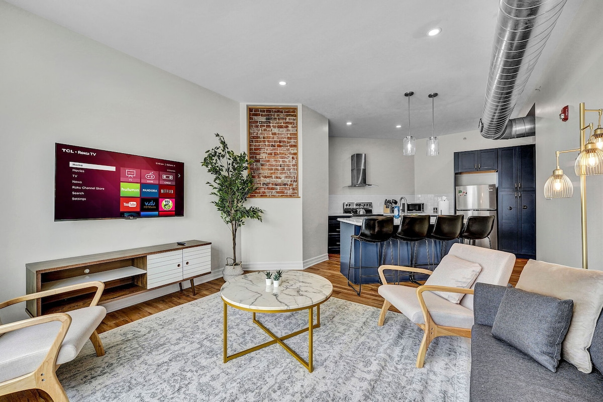 Visting Buffalo or traveling for work? "The Studio" is a brand new construction studio apartment with vaulted ceilings that make this well designed space feel light, airy and calming. "The Studio" features a plush queen size bed, fast WIFI, a well-equipped kitchen and a luxurious large bathroom. Experience the ultimate home-away-from-home in the heart of Buffalo's charming Elmwood Village.