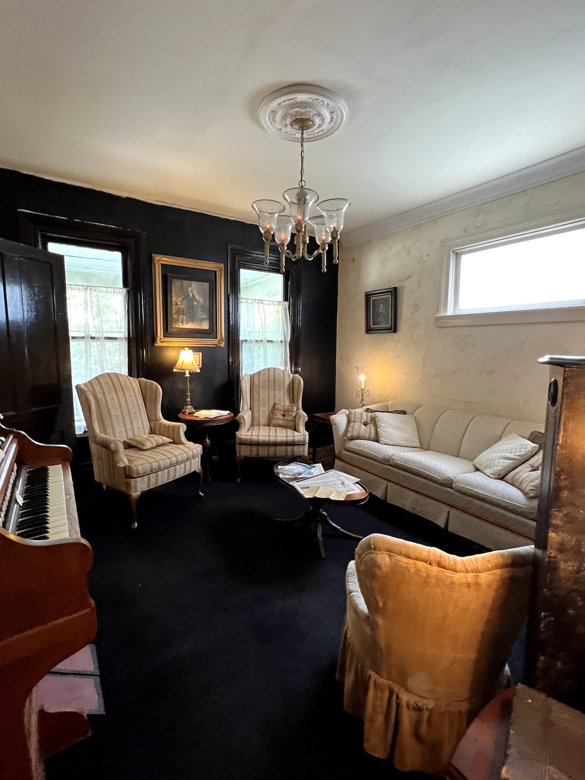 Located in the heart of the Village in a quiet tree-lined neighborhood. Walking distance to the Roycroft Inn and the entire village. Our historic home has a large front porch, back deck and lovely yard. There is off-street parking behind the carriage house. This listing shares a bath with our other listing, Peaceable Kingdom.