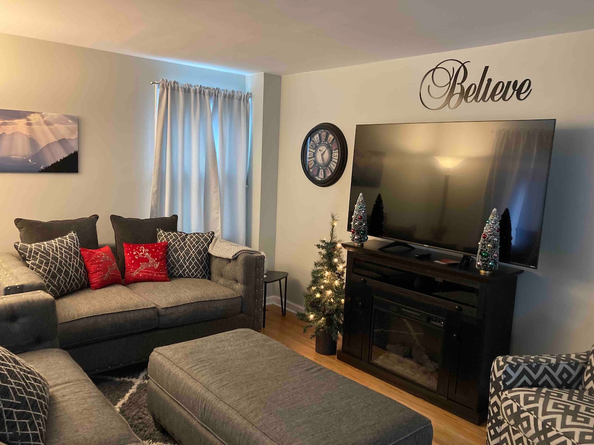 D&C Airbnb adds home-like comfort to your travel experience. Clean, cozy, quiet and secured 2nd floor apt. Centrally located on Main Street near main highway and public transportation. Your stay includes living room with flat screen tv and surround system and dining room seats four.Living and dining room areas have original woodwork. All standard kitchen amenities including microwave and coffee maker. Bathroom has full size tub and shower. Two bedrooms with queen size beds & ample closet space.