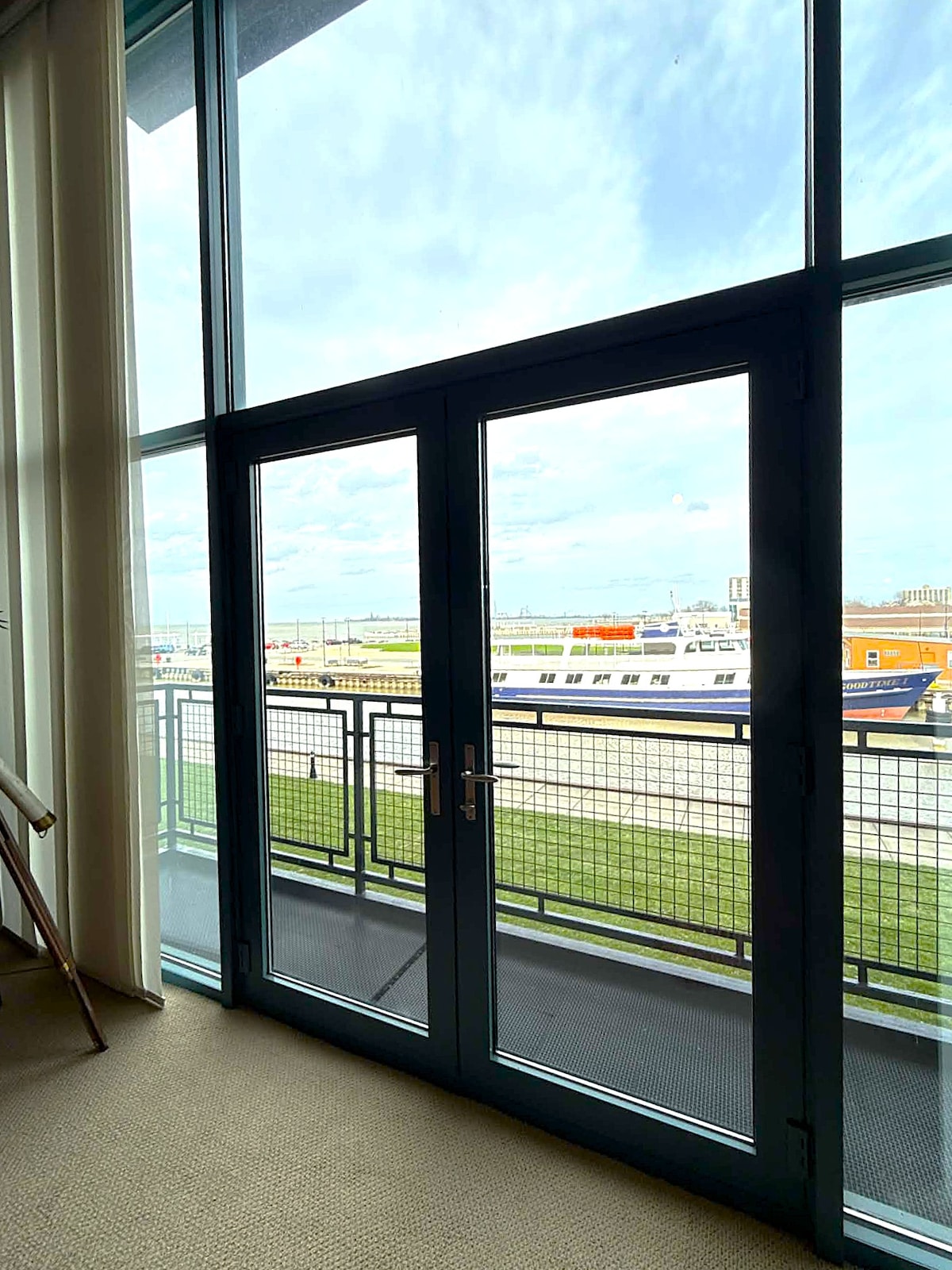 Newly renovated water front condo in downtown Sandusky. Only a few minutes walk to all the downtown restaurants and bars. The Jet Express, which can take you to the islands, is just next door, and Cedar Point is just a 5 minute drive. Condo is furnished with 2 queen size beds, 2 bathrooms, and a large sofa. The property has a large pool. Netflix and Disney streaming services are available on the TV. Security cameras are present in parking lot, pool, lobby & hallways.