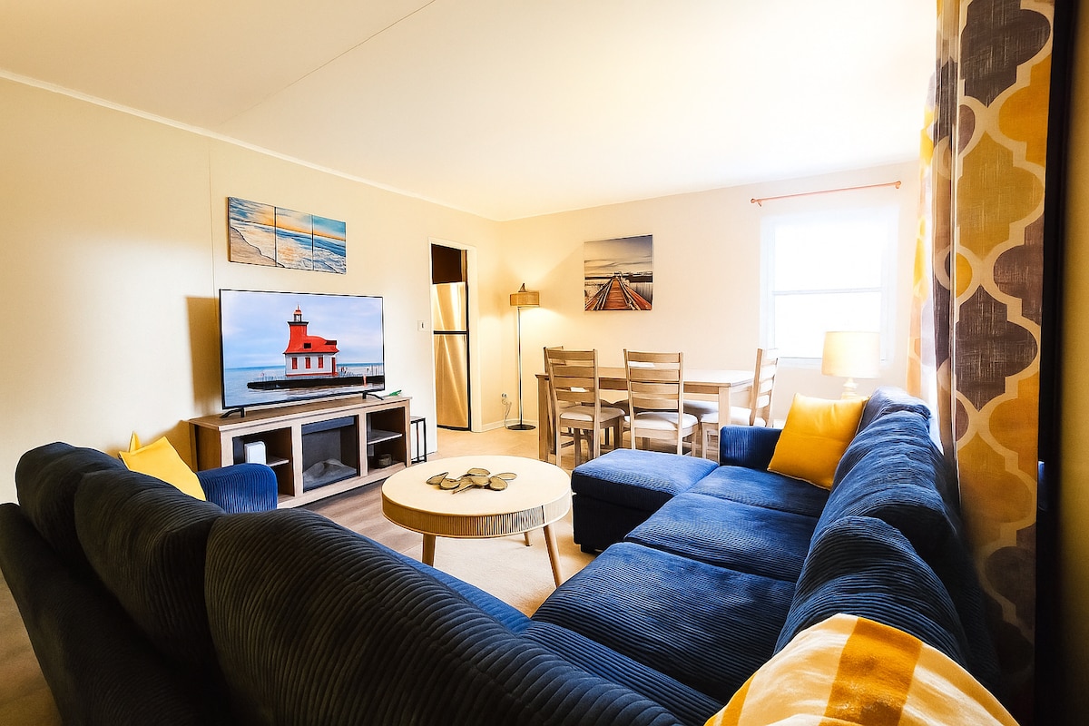 Enjoy amazing lake views in this two-story condo with access to the shores and islands of Lake Erie. Sunrise and sunset views. The condo has two areas for working remotely. We also offer a highchair, travel crib and two Roku TV’s. New furnace and A/C. New trundle bed upstairs. Green space includes Adirondack chairs and a fire pit for roasting marshmallows on the shore. Near Cedar Point Sports Center, Kalahari, Cedar Point Amusement Park, Jet Express, Huron Boat Basin and Nickel Plate Beach.