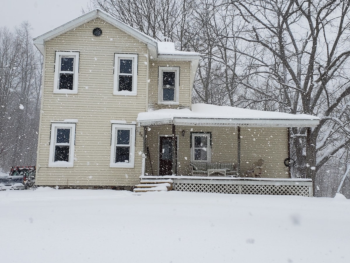 Our guest house is next door to our home and farm. A one-story, 2 bedroom with a newly remodeled bathroom and cottage style amenities is simple but includes some more modern touches for entertainment a comfort. Trails through the field and woods are available during the Summer and hunting off-season. Pets are welcome but must be leashed at all times when outdoors. This area gets a significant amount of snow during the Winter but is right off the highway and a straightforward drive to Lake Erie.