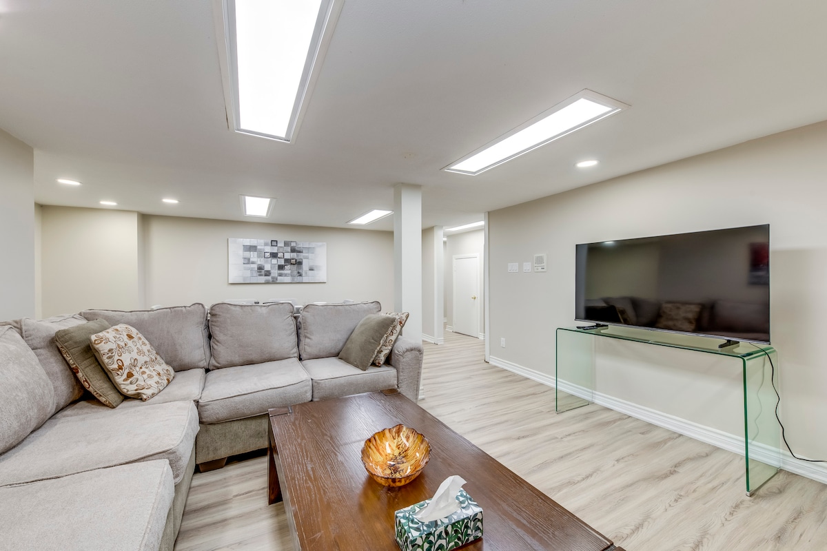 Basement suite with a separate entrance and parking, located in the charming neighborhood of Erin Mills, Mississauga. Our suite offers a comfortable and inviting atmosphere, perfect for short and long stays. - Located just 10 minutes from Square One & downtown Mississauga. - If you're flying in, Toronto Pearson Airport is only a 15-minute drive. - To explore city of Toronto, we're ideally located just 30 minutes from downtown. - The University of Toronto Mississauga is also nearby.