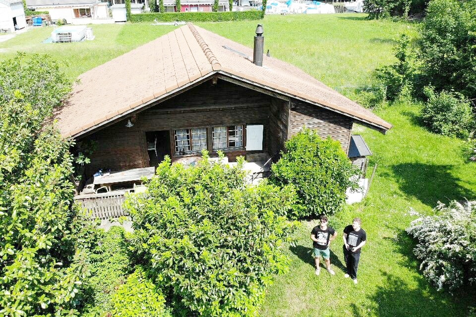 Idyllisches rustikales Ferienhaus in Erlach, direkt am See mit zugehörigem Wald. Grosser Umschwung mit Garten und Grillstelle. Das Chalet hat 2 Stöcke, unten befindet sich die Küche, das Badezimmer und Wohnzimmer und 2 Schlafzimmer. Im einen Schlafzimmer hat es ein Doppelbett, im anderen ein Hochbett (d.h. 2 Einzelbetten) und noch ein einzelnes Bett. Im oberen Stock befindet sich nochmals ein grosser Raum mit einem Doppelbett. Um zum See zu gelangen hat man ca. 2 Minuten.