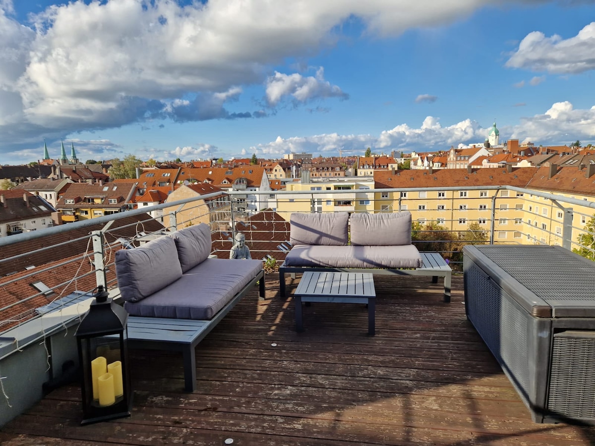 Die zentral gelegene Maisonette Wohnung bietet einen atemberaubenden Blick über die Dächer Nürnbergs. Die Straßenbahn (Deichslerstraße) ist direkt vor der Tür und bis in die Stadt sind es ca. 10-15 Minuten zu Fuß. Lohnend also auch zum Besuch des Christkindlesmarktes. Direkt fußläufig befindet sich das Naherholungsgebiet des Wöhrder Sees mit Möglichkeiten zum Spazieren, Tretboot fahren oder Tischtennis spielen.