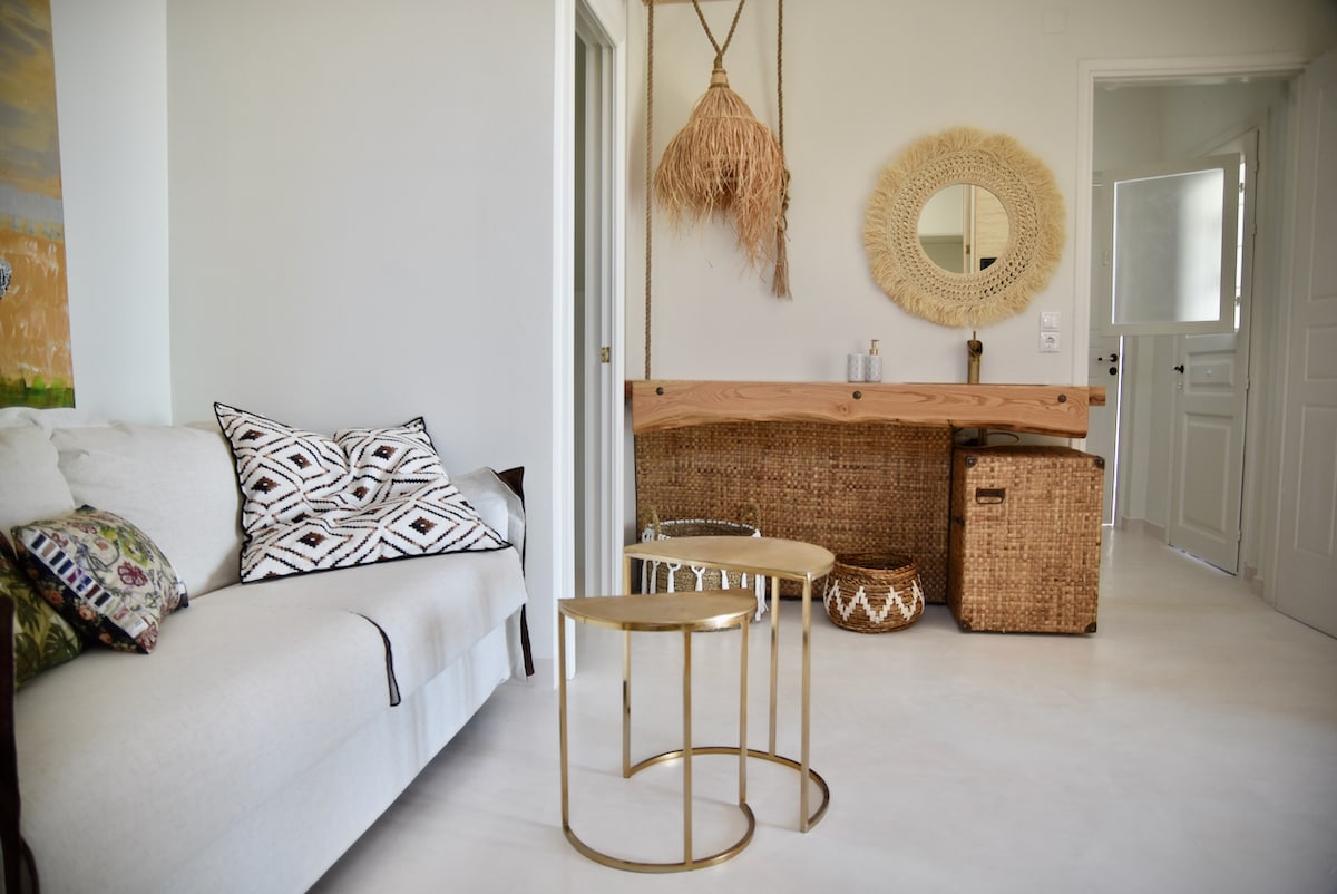 The studio combines tradition with luxury and comfort. The decoration of Ostria is minimalist according to the Cycladic traditions of the island. The exterior space is characterized by the tranquility, the elegance and the imposing charm of the view in the sea. Within a few meters you will find a bakery, a mini market, a café, picturesque taverns and the marina.