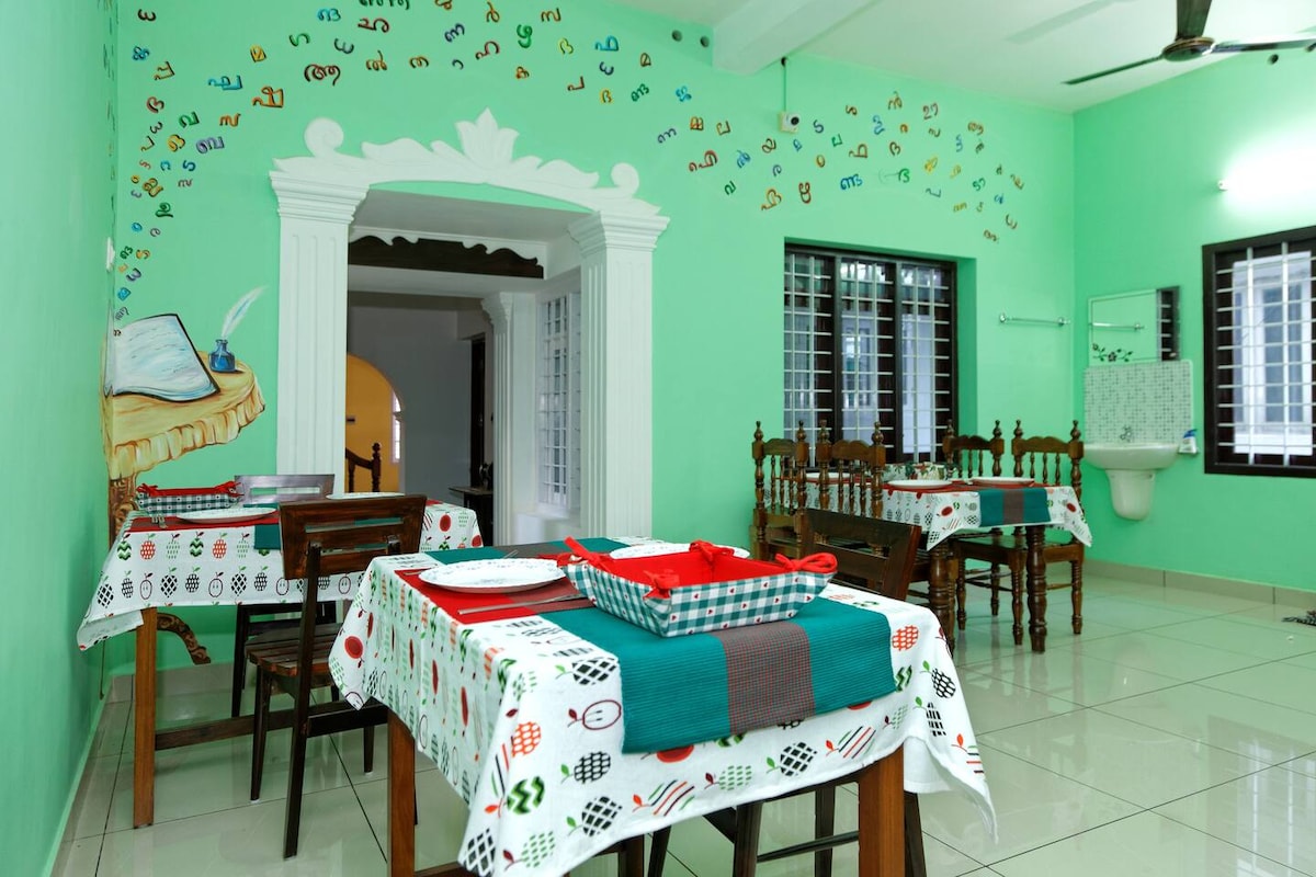 Peaceful riverside home in a laid back Kerala village, far from city noise yet comfortably connected with fast Wi-Fi and reliable power backup. Enjoy authentic home-cooked Kerala cuisine, and experience warm family hospitality. Perfect for remote workers, families, and travelers seeking rest, culture, and slow living in nature. • Fast Wi-Fi & power backup • Kitchenette access • Ayurveda treatments & massage • Yoga & meditation • Village walks & cycling • Swim in river • Laundry service