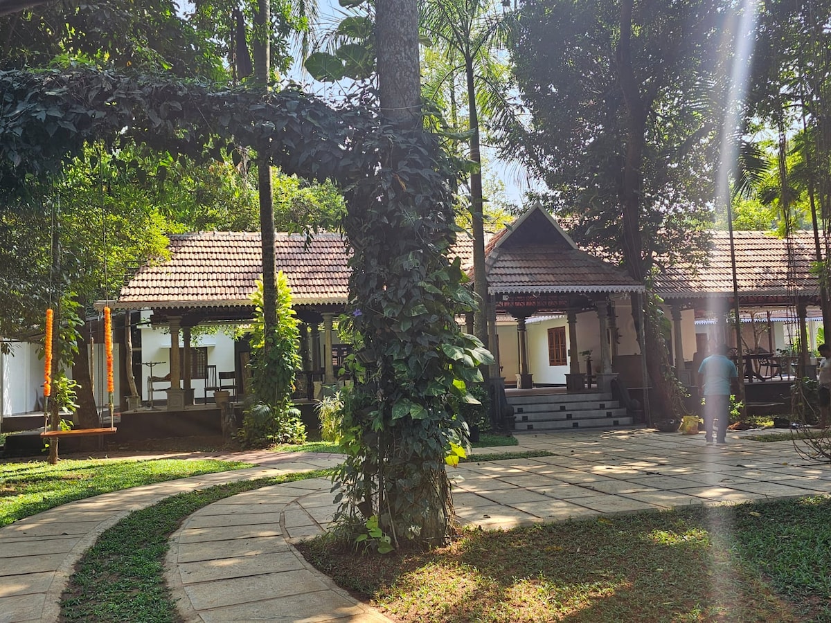 Enjoy and relax with the whole family and friends. Beautiful riverside stay in a rustic village. Function hall with mike and speakers. Yoga meditation classes. Enjoy the river in rustic village. Healthy and amazing home made Kerala food. Loving family. BBQ and more..