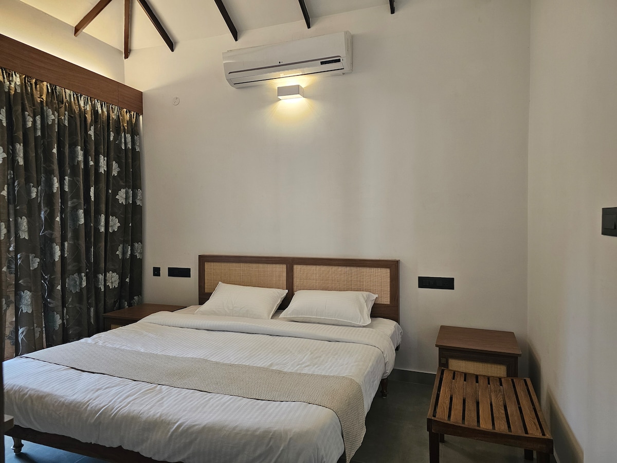 JC Den Villas by Voye Homes, a serene retreat located in the picturesque village of Kumbalanghi, Kochi. Our charming 2-bedroom private cottage offers a unique blend of comfort and nature, featuring A-C rooms and a stunning backwater view right from your doorstep. Embrace the tranquility of our small garden and enjoy the exclusive access to backwater frontage, perfect for a peaceful escape. For the adventurous, KAYAKING is available, allowing you to explore the scenic beauty of the backwaters